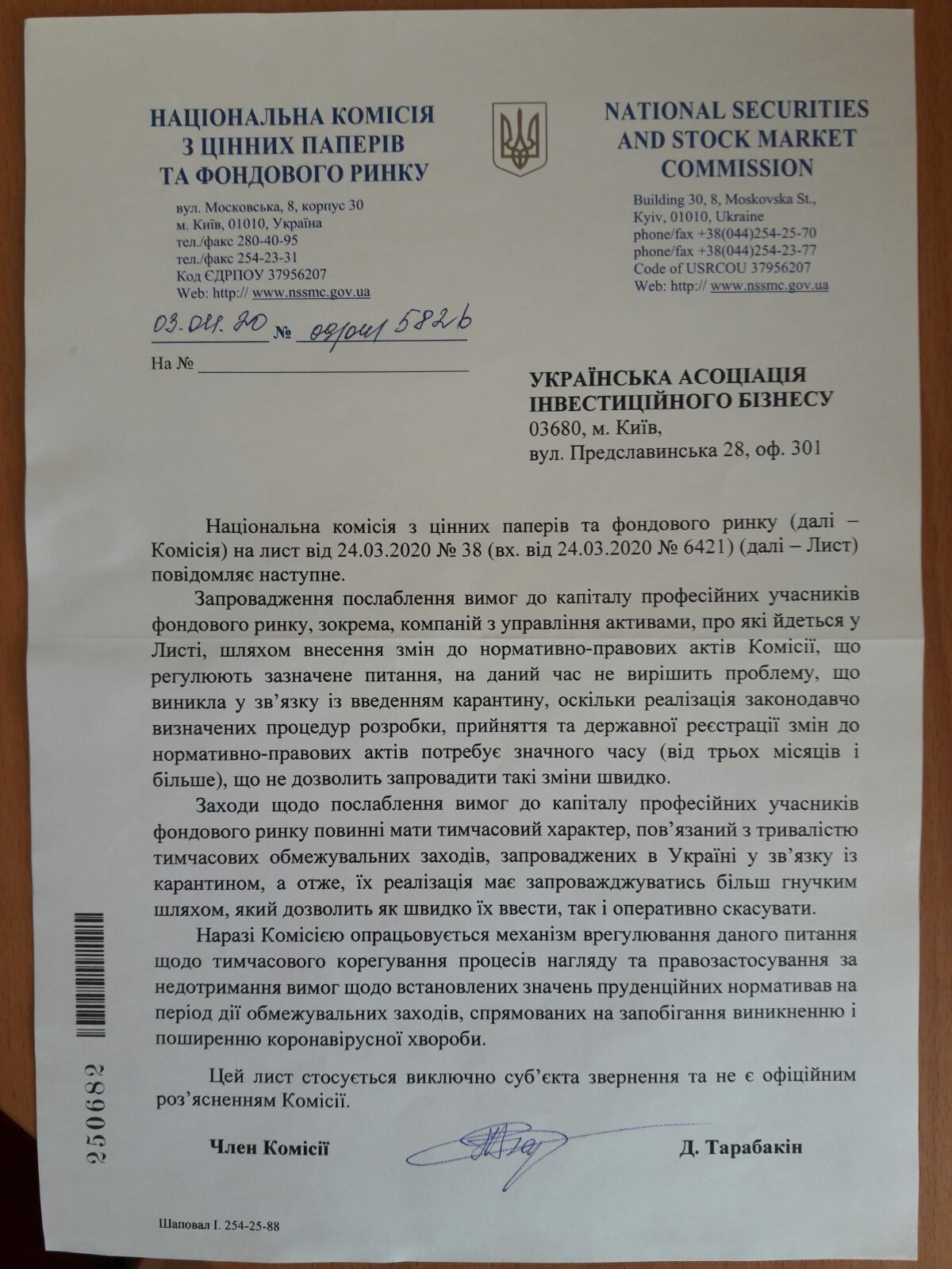 У зв'язку зі зростанням ризиків світової рецесії та фінансово-економічної кризи на тлі пандемії COVID-19, запровадженням відповідних обмежувальних заходів та послаблень законодавчих і регуляторних вимог у світі та в Україні, Асоціація вважає за необхідне передбачити тимчасове послаблення вимог до капіталу професійних учасників фондового ринку, зокрема, компаній з управління активами (КУА), та нагляду за їх дотриманням, встановлених відповідними рішеннями Національної комісії з цінних паперів та фондового ринку. Для цього УАІБ звернулася до НКЦПФР 24 березня листом зі своїми пропозиції щодо цього.