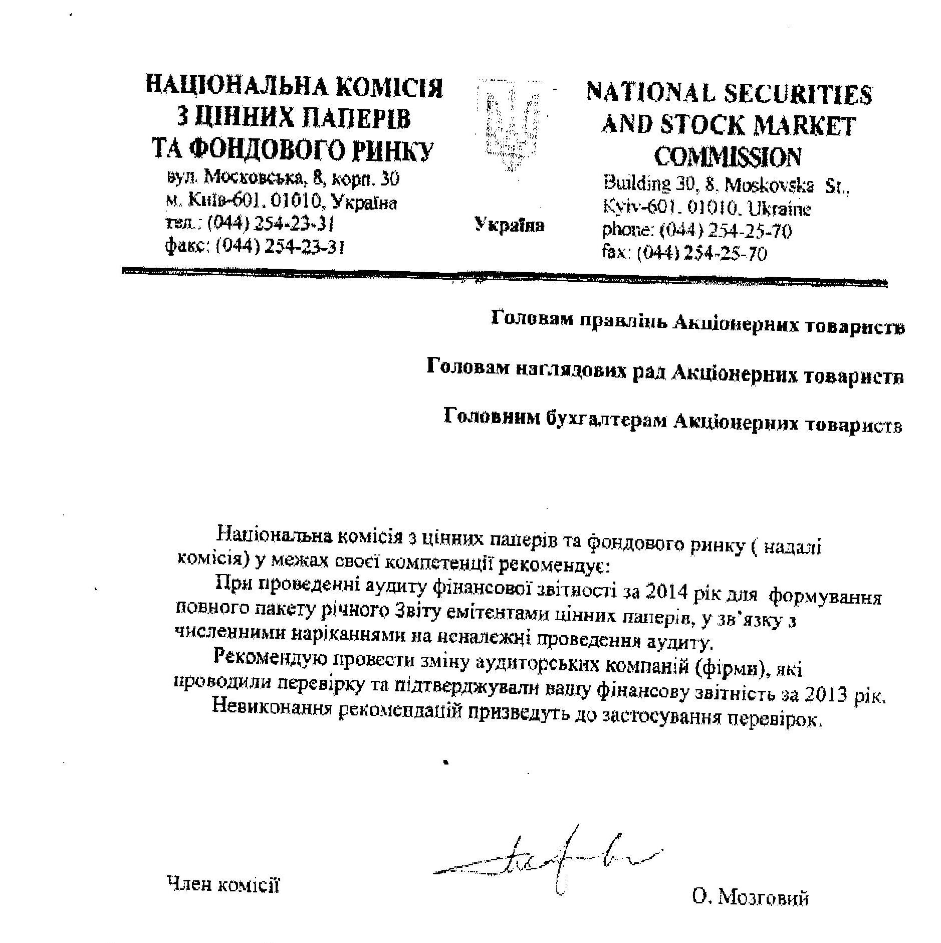 Кроме того, в НКЦБФР обращают внимание на то, что Олег Мозговой, за подписью которого были разосланны поддельные документы, был уволен с должности Члена Комиссии 16 декабря 2014 года, что еще раз подтверждает недостоверность информации в таких письмах.