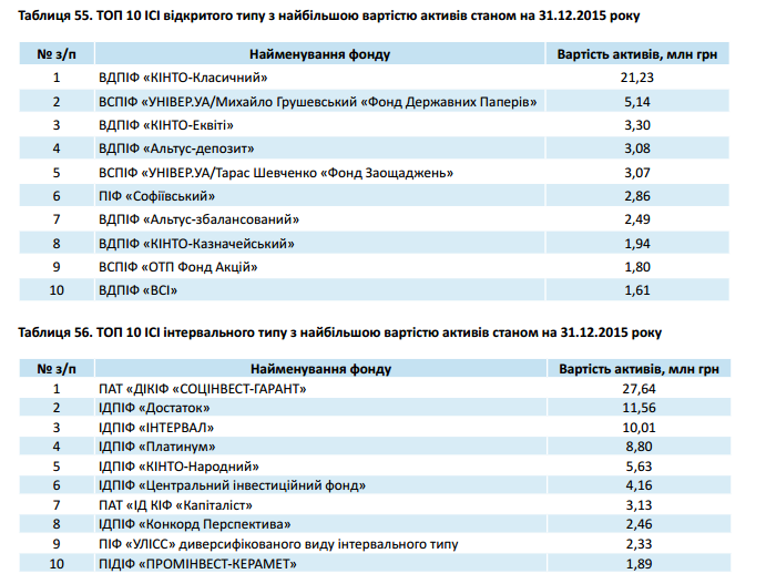 Отметим, что общая сумма активов функционирующих ИСИ в 2015 году составила 236,02 млрд грн., тогда как сумма чистых активов действующих ИСИ – 199,01 млрд грн.